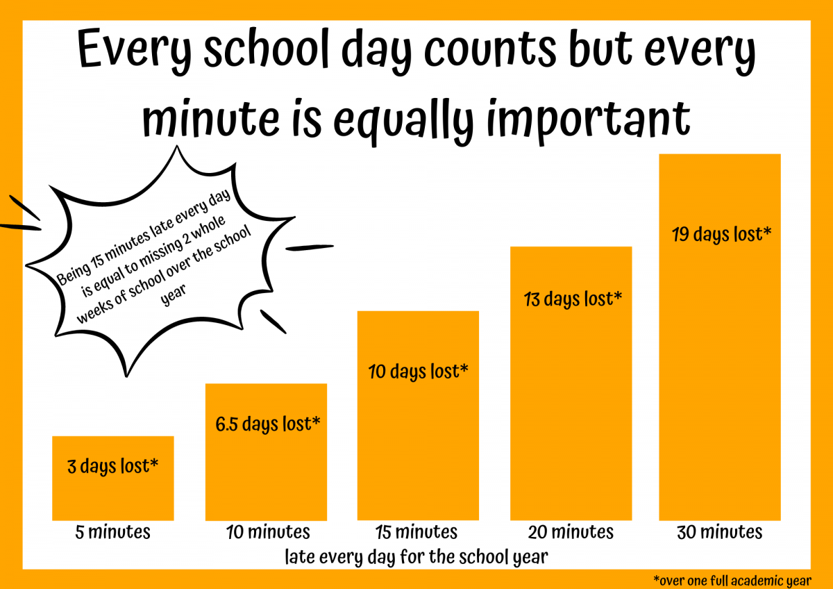 When your child is late it is not only impacting on their attendance but it is also disruptive to the rest of the class when they are settled and starting their lessons.