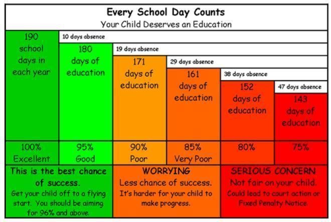 Drake’s C of E Primary School is committed to maximising the achievement of all our students. There is a clear link between good attendance and educational achievement.